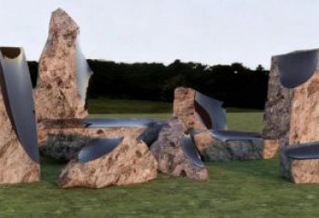 《石語?鏡界》石雕與鏡面不銹鋼結合景觀雕塑