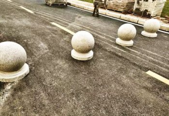 動(dòng)物園門口擺放球形花崗巖攔車石雕塑