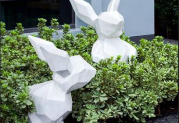 這是一座不銹鋼戶外景觀雕塑,以幾何切面塑白兔形象,綴金色裝飾,簡約現代,為場地添靈動活力 。