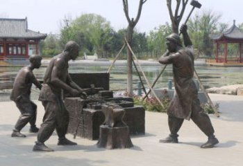 該民俗雕塑以銅雕為載體,傳承傳統(tǒng)雕塑工藝。創(chuàng)作者聚焦 “河口碼頭” 場(chǎng)景,刻畫三位勞動(dòng)者搬運(yùn)貨物的動(dòng)態(tài):有的背負(fù)糧袋爬坡、有的合力抬箱、有的借力起運(yùn),通過(guò)寫實(shí)造型與力量感姿態(tài),還原舊時(shí)碼頭勞作風(fēng)貌。從文化意義看,它是地域歷史的微縮呈現(xiàn)。碼頭曾是商貿(mào)、交通樞紐,勞動(dòng)者群像見(jiàn)證往昔貨運(yùn)興衰,承載當(dāng)?shù)匕傩諏?duì)勤勞、協(xié)作精神的推崇;銅雕材質(zhì)賦予作品持久生命力,讓后代能觸摸先輩奮斗軌跡,延續(xù)對(duì)傳統(tǒng)行業(yè)、勞動(dòng)價(jià)值的文化記憶,成為連接過(guò)去與當(dāng)下的民俗文化紐帶,喚起人們對(duì)地域發(fā)展歷程與勞動(dòng)精神的共情。