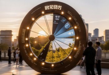 在造型與元素上,雕塑以金、白為主色調(diào),幾何線條構(gòu)建出富有張力的框架,如同城市發(fā)展的 “骨架”。內(nèi)部融入城市建筑剪影,展現(xiàn) “山水新都市” 的風貌;機械齒輪等元素,彰顯城市產(chǎn)業(yè)的創(chuàng)新活力,呼應 “創(chuàng)智” 主題;還有人文相關的圖案與文字,傳遞 “漁樵新義橋” 的人文內(nèi)涵,將城市的過去、現(xiàn)在與未來,以及自然、產(chǎn)業(yè)、人文等多元維度,通過藝術(shù)化的不銹鋼造型與鏡面效果整合呈現(xiàn)。整體而言,雕塑通過不銹鋼的鏡面反射,打破藝術(shù)與現(xiàn)實的邊界,讓觀者在欣賞雕塑時,也能從鏡面中看到自己與城市環(huán)境,產(chǎn)生互動與共鳴。同時,多元元素的融合,既展現(xiàn)了城市在發(fā)展中對自然生態(tài)的尊重、對產(chǎn)業(yè)創(chuàng)新的追求,也傳承了人文精神,成為一座承載城市記憶、展望城市未來的標志性景觀雕塑,為城市空間增添藝術(shù)魅力與文化深度。<br />